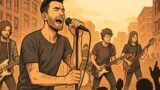 Mary Hopkin風の金髪の女性がThose Were The Daysを歌っている漫画絵 英語で歌う